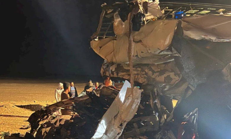 لقي 13 شخصا مصرعهم وأصيب 3 آخران في حادث تصادم مروع بين سيارة “ميكروباص” وشاحنة نقل، فجر اليوم الاثنين، على الطريق الصحراوي الغربي بمركز الغنايم في أسيوط.