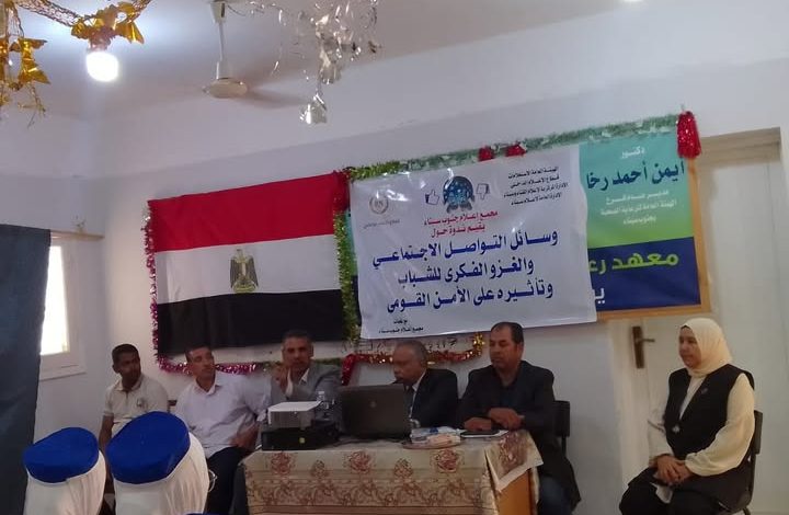 عقد مجمع إعلام جنوب سيناء ندوة حول (وسائل التواصل الاجتماعى والغزو الفكرى للشباب وتأثيره على الامن القومى) بالمعهد العالى للتمريض ضمن فعاليات الاستراتيجية الوطنية لقطاع الاعلام الداخلى 2025-2030 برعاية الدكتور ضياء رشوان رئيس الهيئة العامة للاستعلامات وبتوجيهات الدكتور أحمد يحيى رئيس قطاع الإعلام الداخلى وإشراف إعلامى أ/ عبد الحميد عزب مدير عام إعلام سيناء