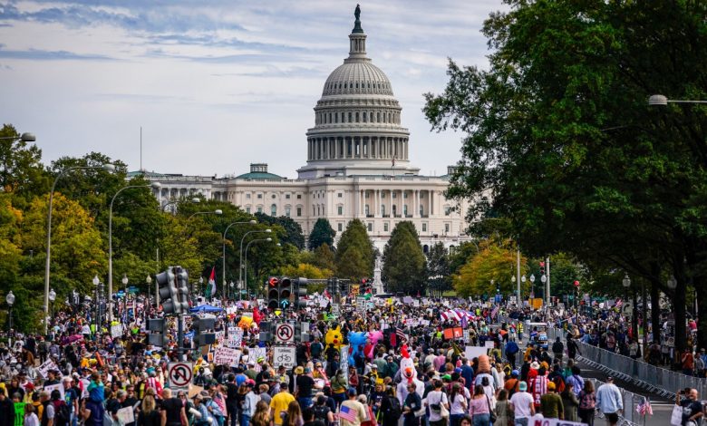 وفي واشنطن العاصمة، اكتظت الشوارع بالمتظاهرين وتوجهوا نحو مبنى الكونغرس، مرددين الهتافات وحاملين اللافتات والأعلام الأميركية والبالونات في أجواء كرنفالية سلمية.