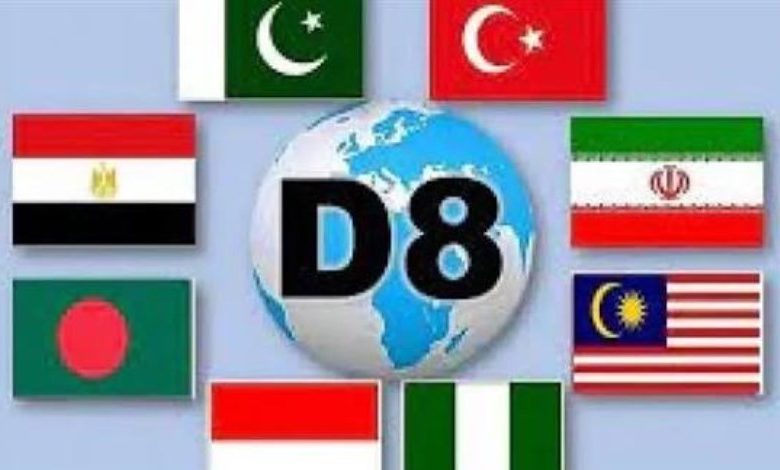 وتضم مجموعة الدول الثماني النامية بنجلاديش ومصر وإندونيسيا وإيران وماليزيا ونيجيريا وباكستان وتركيا، وانضمت إليها أذربيجان في ديسمبر الماضي، بهدف تحسين موقع الدول النامية في الاقتصاد العالمي وتعزيز فرص التجارة والاستثمار بينها.