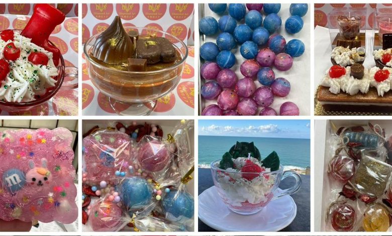 من أكواب الشمع الراقية، إلى شموع البودينج، مرورًا بكاسات الثلج وقطع الحلويات الشكل… كل تصميم يعكس مستوى من الإبداع يجعل العميل يشعر أنه يقتني قطعة فنية.
